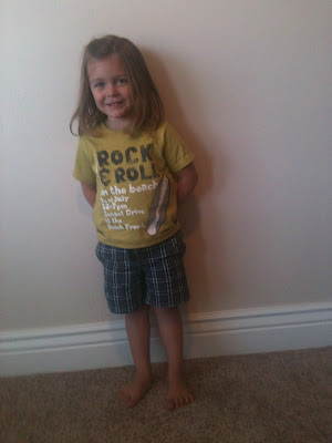 Allyson came down stairs after insisting on getting herself ready all by herself for the day. She had put a post it on her clothes that read, "Allyson got ready all by myself". I'm really glad she put that disclaimer on there. haha ;) I really do think she did a pretty good job, though.